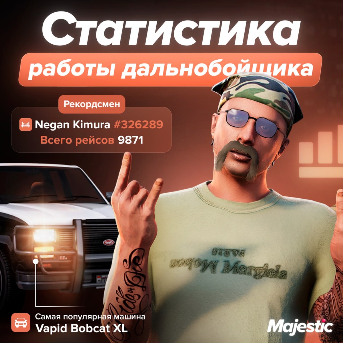 С момента обновления прошло менее полугода, и за это время игроки успели опробовать все улучшения профессии: больше маршрутов, активностей и доходов. На картинках — статистика за 6 месяцев, и одного лишь пробега хватит, чтобы 59 000 раз слетать на Луну и обратно 👽 ❤️ Majestic Role Play