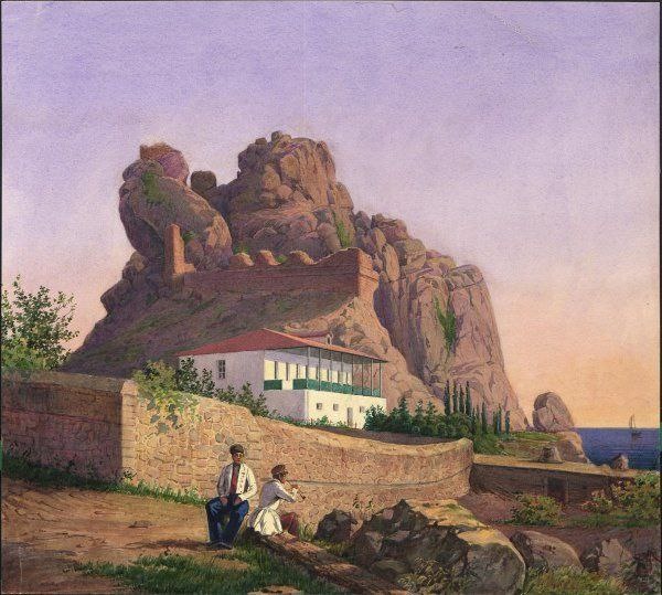 Гурзуф. Развалины крепости, выстроенной Юстинианом. Бумага, акварель, тушь, перо. 28,4х31,7 см. Из книги: Собрание карт и рисунков к исследованиям о древностях Южной России и берегов Черного моря, графа Алексея Уварова (СПб., 1851-1853) Местечко Гурзуф впервые упоминает Прокопий Кесарийский в своем трактате «О постройках», посвященном строительной деятельности Юстиниана: Он воздвиг там и два укрепления, так называемые Алуста и в Горзувитах. (Прокопий Кесарийский. О постройках: Пер. С. П. Кондратьева II ВДИ. – 1939. – № 4 (9). – С. 249) #Гурзуф #история #Византия #Юстиниан #графика #искусство #живопись #источники #Прокопий