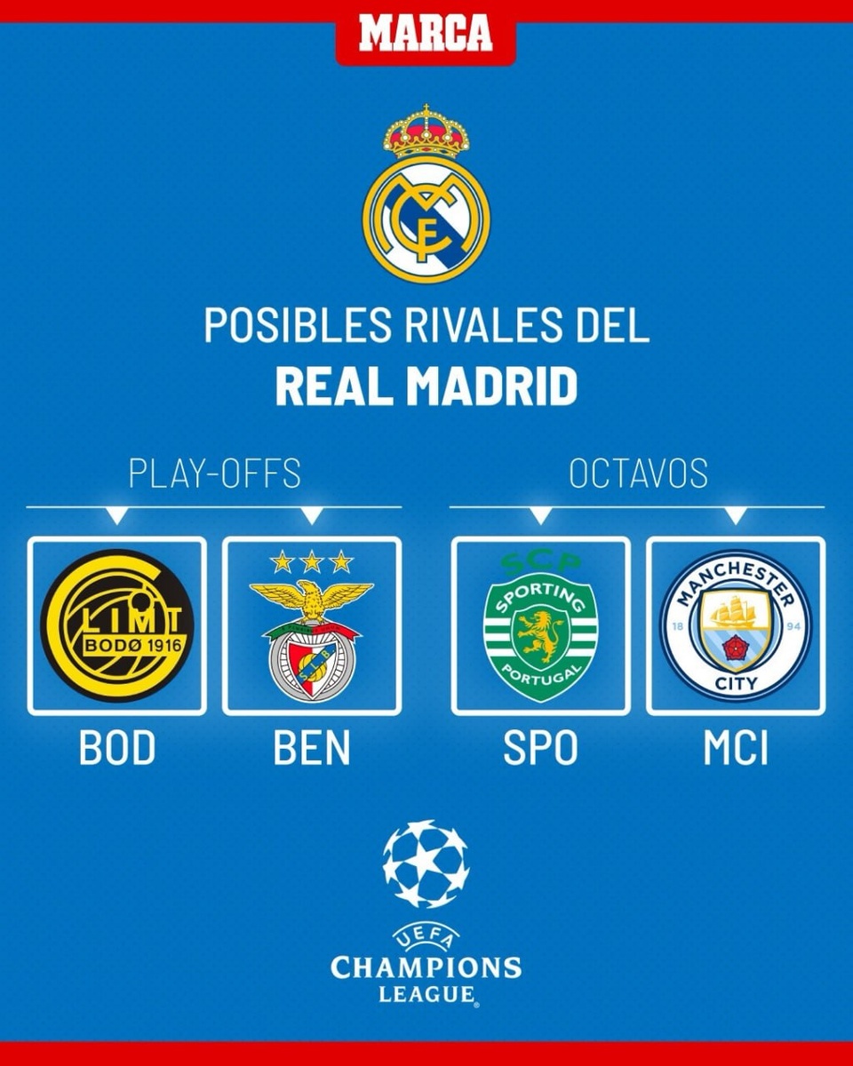 плей-офф Лиги чемпионов: «Будё-Глимт» или «Бенфика». В случае победы команда встретится с кем-нибудь из пары пары «Спортинг» /«Манчестер Сити». @мировой Футбол