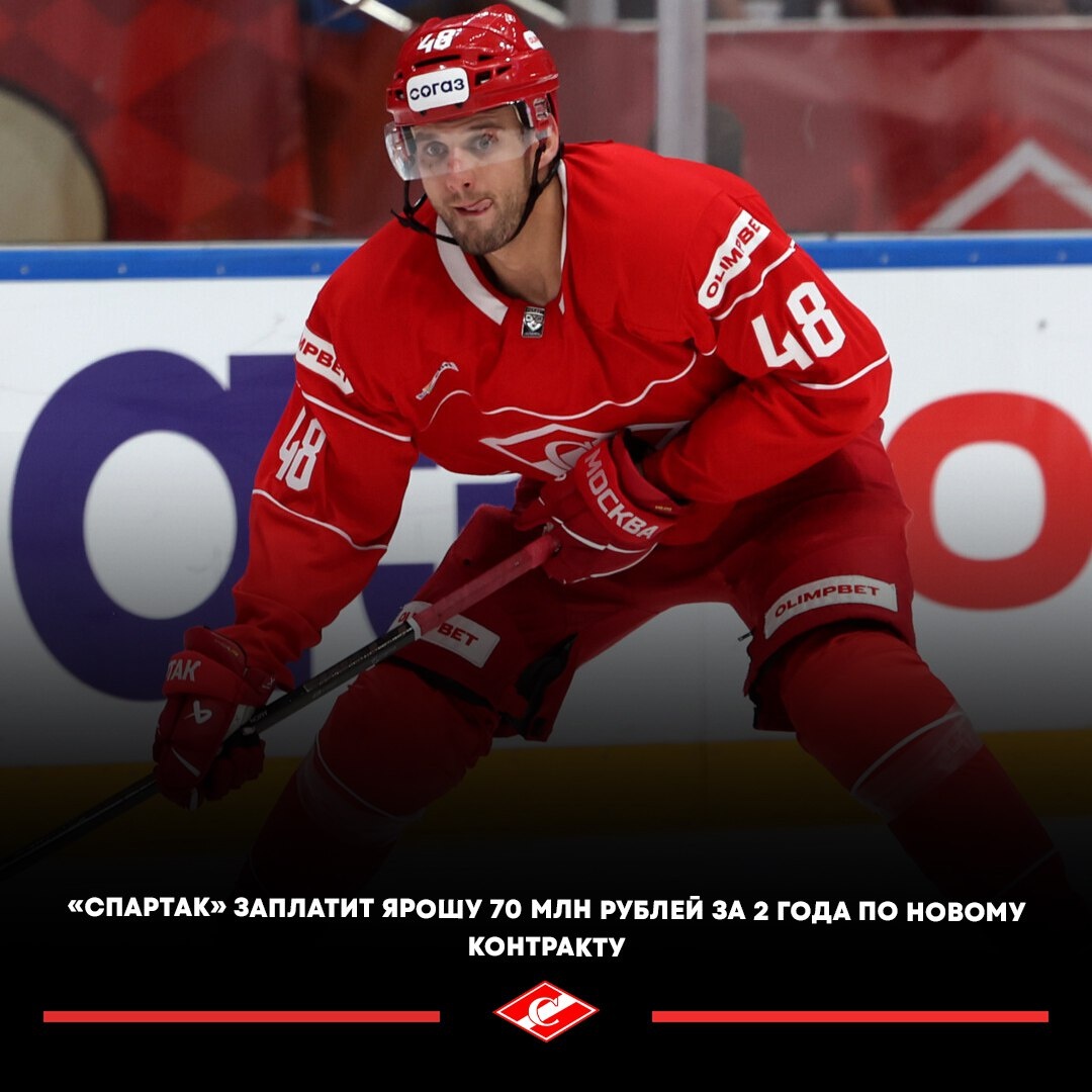 🔥🇸🇰 Ярош заработает в «Спартаке» 70 млн рублей за 2 года. 🚨 В этом чемпионате КХЛ 29-летний хоккеист провел 30 матчей и набрал 8 (0+8) очков при полезности «плюс 1».