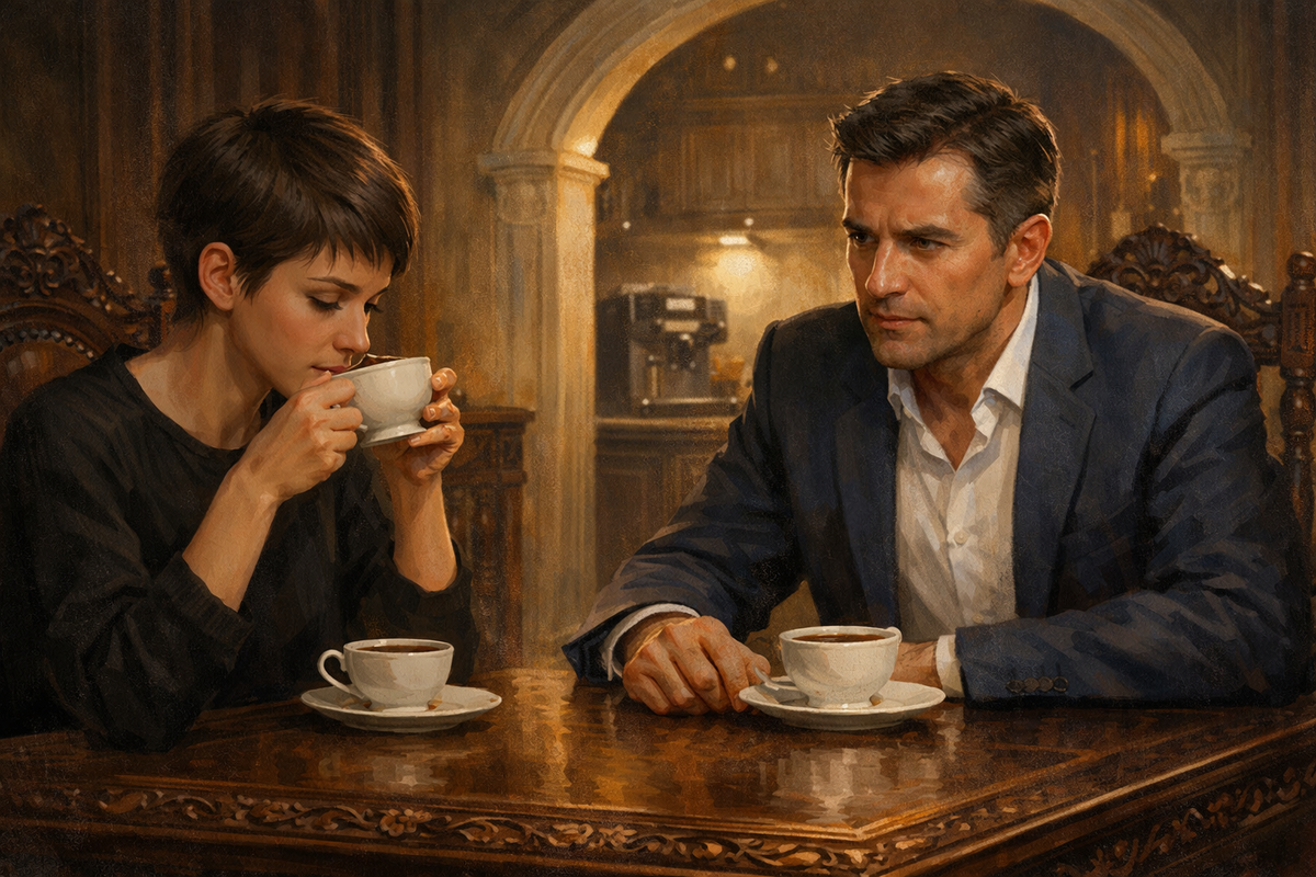 Кажется, Матвей замечает мой слишком затянувшийся взгляд. Уголки его губ приподнимаются в едва уловимой, но понимающей улыбке. Он ставит передо мной чашку с тихим стуком фарфора о дерево, и я спешу отпить немного обжигающей, горьковатой жидкости, чтобы хоть как-то отвлечься от нахлынувших романтических и совсем не романтичных мечтаний. Жар от кофе и от собственной смелости растекается по телу.