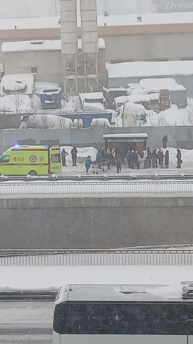 Cкорая забирает человека с остановки напротив ДД11. Кто знает, что случилось??