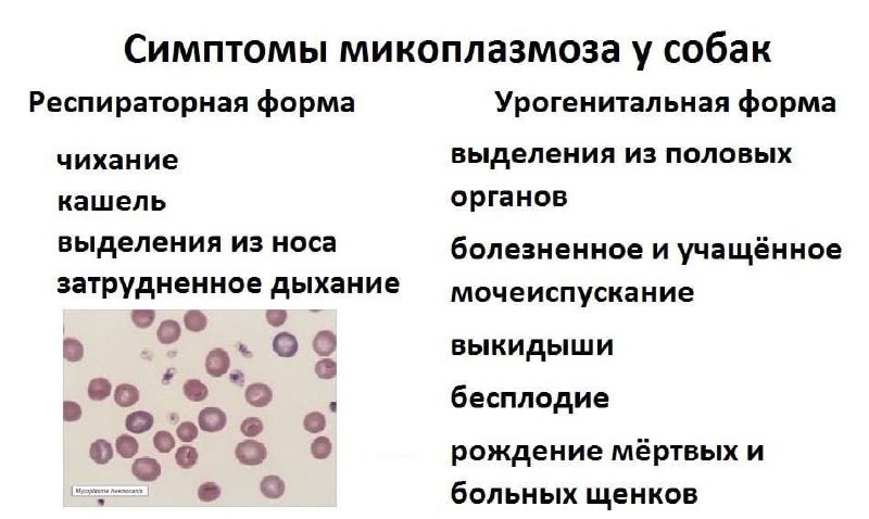 МИКОПЛАЗМОЗ ❗️ Микоплазмоз у собак - это группа инфекционных заболеваний, вызываемых микроорганизмами класса Mycoplasma. ⚠️ Заражение Причины заражения разнообразны: 🔴питомец может заразиться во время контакта с больным животным 🔴бессимптомным переносчиком или с инфицированными предметами 🔴вертикальное заражение также возможно - от инфицированной матери к щенку 📌 Симптомы Симптомы микоплазмоза разнообразны и зависят от поражённого органа. Чаще всего наблюдаются: 🔴истечения из носа 🔴кашель и хрипы 🔴апатия и отсутствие аппетита 🔴гнойные выделения из глаз 🔴повышенная температура 🔴проблемы с суставами 🔎 Диагностика Для диагностики микоплазмоза берут смывы с поражённых слизистых оболочек и исследуют их методом ПЦР. Этот анализ помогает точно определить наличие инфекции и ее тип. 💊 Лечение Лечение зависит от формы инфекции. Ветеринар может прописать курс антибиотиков, противовоспалительные средства, а также препараты от кашля, рвоты и диареи, в зависимости от состояни