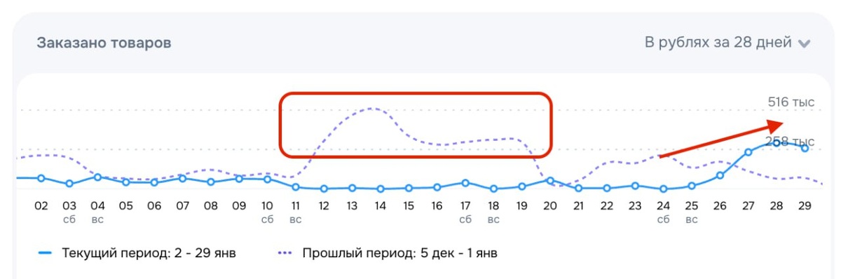 Как бы ни хотелось зайти в январь «по учебнику» — с нормальными остатками, готовыми карточками и продажами на уровне декабря — реальность часто другая. У меня есть кейсы, где мы вообще не ощутили просадки. Про один из них я писал ранее. Но есть и другой сценарий — более жизненный. Исходные условия • Поставщик задержал поставку • Категория А в нашем ассортименте — без остатков • Что запускать дальше — непонятно • Дизайн не готов • Отгрузки на складах задерживаются или теряются коробами Фактически: старт года без товара. Тем не менее, ситуацию удалось развернуть. Сейчас цель — 300–500к в день на двух артикулах. Что сделали? 1. Быстро перезапустили карточки Работали параллельно: • один дизайнер был у меня • один — у селлера В итоге: • 2 новые воронки • 8 вариантов первых фотографий Часть визуалов: • протестировали на WB (быстрее получать первичные сигналы) • оставшиеся — через Sellium Тест ещё идёт, но направление уже понятно. 2. SEO без лишнего Ниша знакомая, ключи