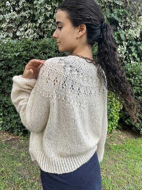 Есть пряжа, которая держит узор, утончённо смотрится в ажурах, она универсальна — от топов до кардиганов, её одинаково любят и соло, и в