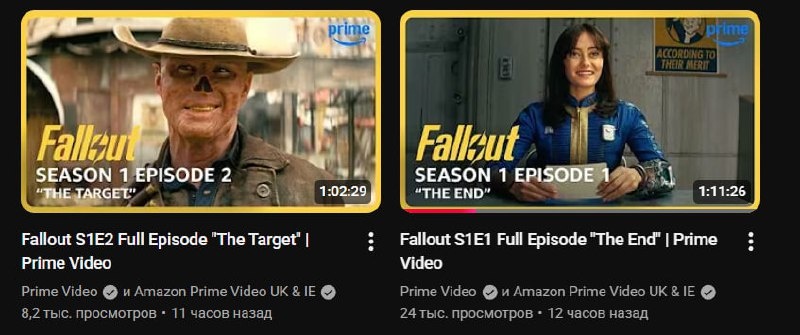 Amazon начала выкладывать серии первого сезона Fallout на YouTube — пока для просмотра доступно только два эпизода