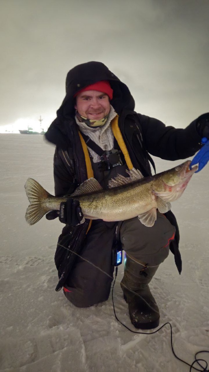 🚩 Финский залив, окрестности Корабельного фарватера, Василеостровский район Бывают такие дни, когда на вечер есть планы, но тоненький голосок внутри шепчет: “Отменяй. Так будет лучше. Выбери другое.” И вчера вечером я прислушался к этому внутреннему мудрецу. Вечером ребята решили ехать на Балт.яму. Позвали и меня. Конечно же я согласился! Приехали, дошли до точек, забурились на десятке. Холодало. Ветер гнал позёмку в лунки. Мы достаточно долго макали приманки в воду, видели выходы, получали атаки. У ребят опыта побольше, у них атаки чаще были. А у меня, наверное, в этот вечер везения было с запасом. Всего одна поклёвка, но какая! На экране эхолота вижу у дна жирную линию. Подаю ей приманку и тут же реакция, линия оживает и начинает переть вверх. Немного приподнимаю приманку, выполняю два лёгких покачивания и сразу получаю удар. Удилище Niobe с хлыстом 65H от FolkFishing буквально в дугу. Я такого не припомню зимой в своей недолгой практике. Но палка вяжет, гасит рывки. Фрикци