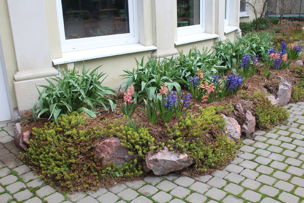 Старушка по имени Маруся решила пригласить подружек в гости, но зная о своей забывчивости, развесила по дому записки: "Не забыть подать кофе". Старушки пришли, сидят, болтают, Маруся кофе подала. Потом еще одну записку увидела - опять кофе подала. Третью увидела - третий раз подала... Вечером старушки идут домой и обсуждают: – Хорошо мы у Маруси посидели! Только странно, что она нам кофе не подала. – Ой, а разве мы были у Маруси? Короче, я - вторая подружка Маруси... Дело в том, что у меня несколько лет назад перед домом были посажены гиацинты: Это само теплое место в саду: южная экспозиция, 100% солнце, прогрев от камней и т.д. Поэтому гиацинты год за годом выдают неплохое цветение без выкопки: Проблема в том, что часть луковиц поделилась, в итоге я имею не один толстый цветонос, а кучку мелочи: А где-то луковицы вообще пропали. Особо этим страдает сорт Gipsy Queen. Короче, каждую весну я думаю: "Не забыть подать девочкам кофе!" "Не забыть докупить гиацинтов!" Но в апреле луковицы ги