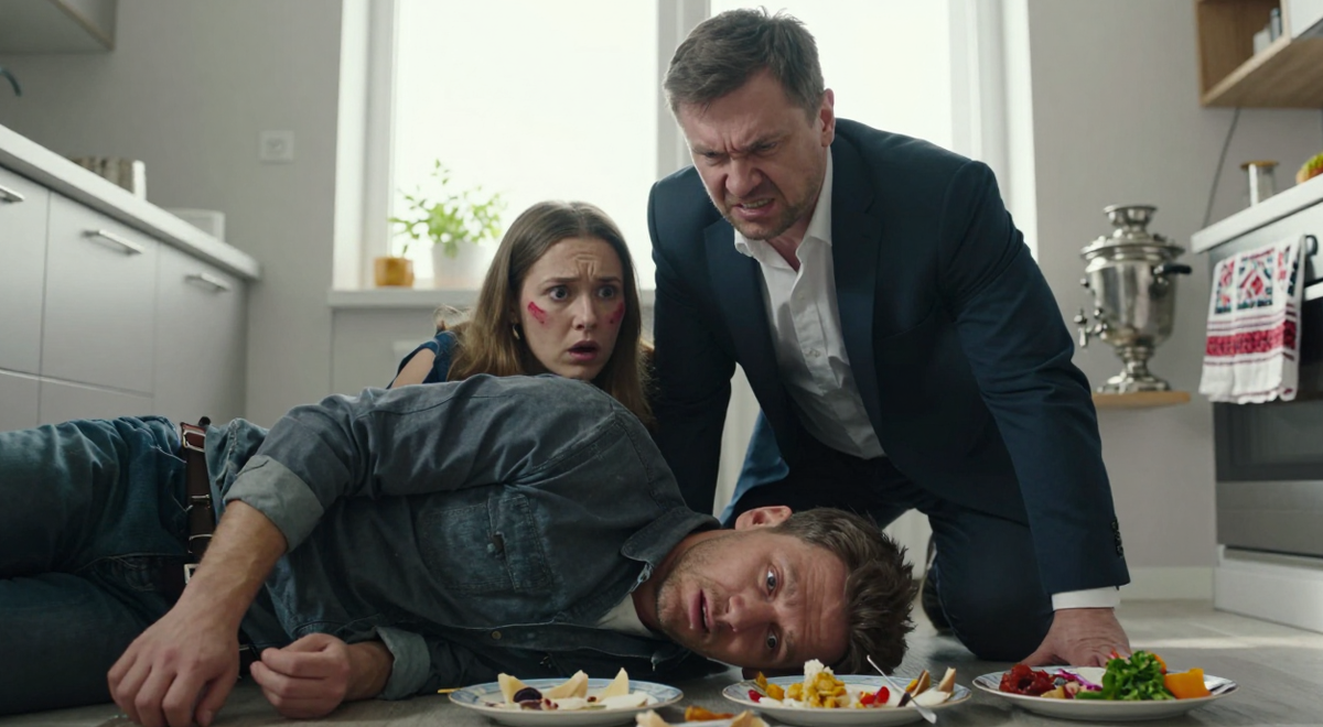 Сергей не успел ответить. Дмитрий Павлович встал, и в тесной столовой сразу стало мало места. Он был выше Сергея на голову и значительно шире в плечах. Без лишних слов, без театральных пауз, он коротким, профессиональным ударом в челюсть отправил моего мужа на пол.