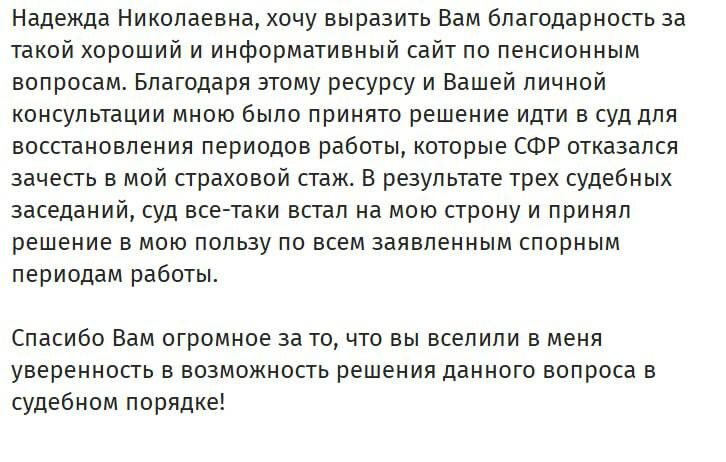 Очень рада слышать, что я и моя деятельность помогают вам, в успешном решении пенсионных вопросов. ❤️