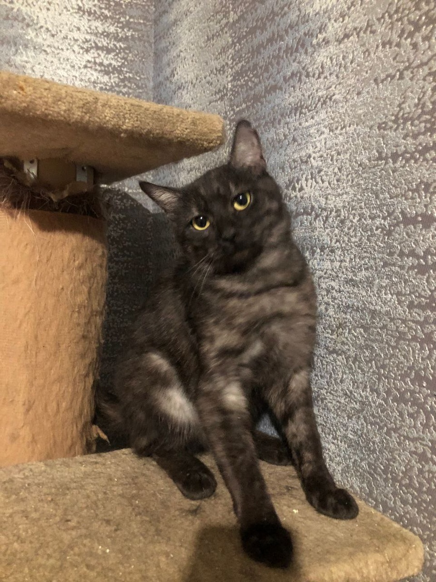 Очаровательная девочка окрас чёрный дым, с красивым именем Мартиша ищет дом. Возраст примерно 11 мес., к лотку приучена, стерилизована. Ручная, можно в семью с детьми, очень компанейская. Звоните 89997976401