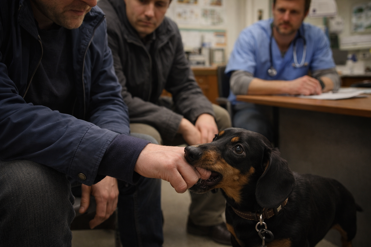 Она вошла в клинику первой — как маленький прокурор на коротких лапах. Такса. Чёрно-рыжая, с глазами «я всё вижу, даже то, что вы сами в себе прячете». Поводок был натянут, как струна, а за поводком шли двое мужчин лет по сорок с лишним. Одинаково одетые, одинаково сжатые, одинаково молчаливые — будто их распечатали на одном принтере и забыли добавить звук.
