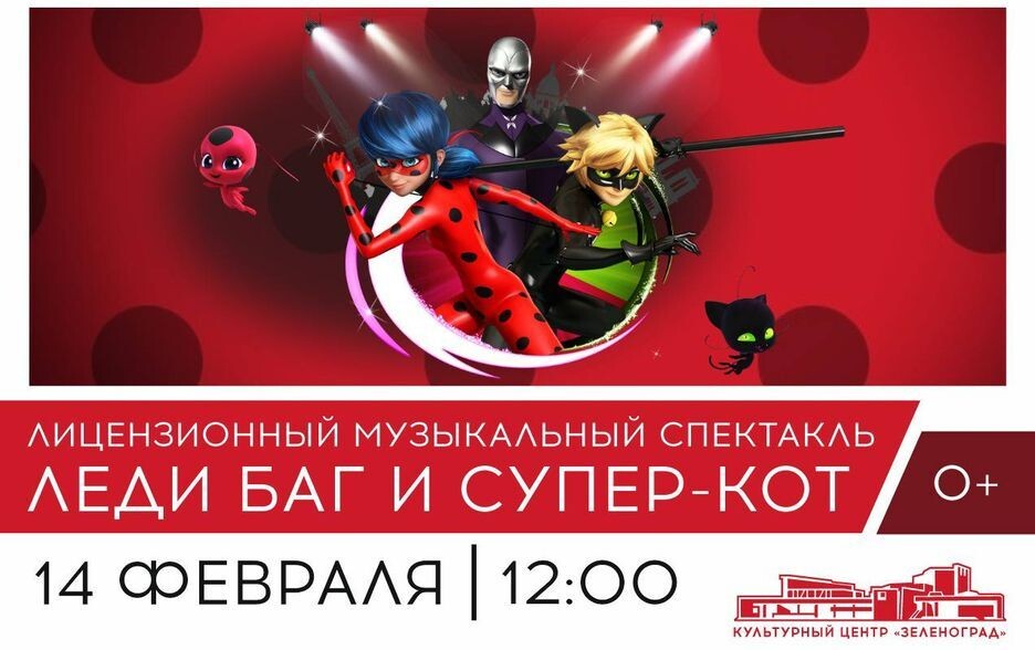 Всероссийская премьера шоу по лицензии ZAG Entertainment. Впервые герои популярного мультипликационного сериала «Леди Баг и Супер Кот» выйдут на сцену и подарят зрителям самые яркие эмоции и впечатления на своем новом музыкальном шоу! Именно здесь, в Москве, состоится премьера долгожданного шоу, впервые созданного специально для широкой аудитории. Дата: 14 февраля, 12:00 (продолжительность — 60 минут без антракта)