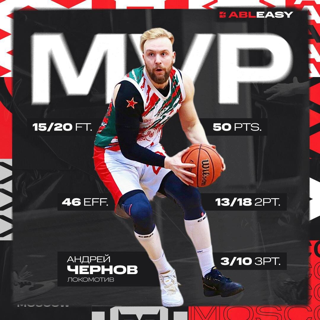 Чернов Андрей (Локомотив) vs Campus Team Nets Easy 12 тур 68:62 50 очков, 13/18 2-очковые, 3/10 3-очковые, 15/20 штрафные, 46 эффективность Надо ли что-то объяснять? Самый безоговорочный MVP тура в этом сезоне. Андрей Чернов забил 50 очков и помог "Локомотиву" одержать победу в овертайме. Чернов, как совершенное атакующее оружие, забивал со всех дистанций в течение матча. В решающий отрезок времени Чернов стал буквально всей атакой команды, набрав 20 очков подряд в четвертой четверти и овертайме! 📱Наш сайт 📱Группа Вконтакте 1️⃣@ABL Moscow