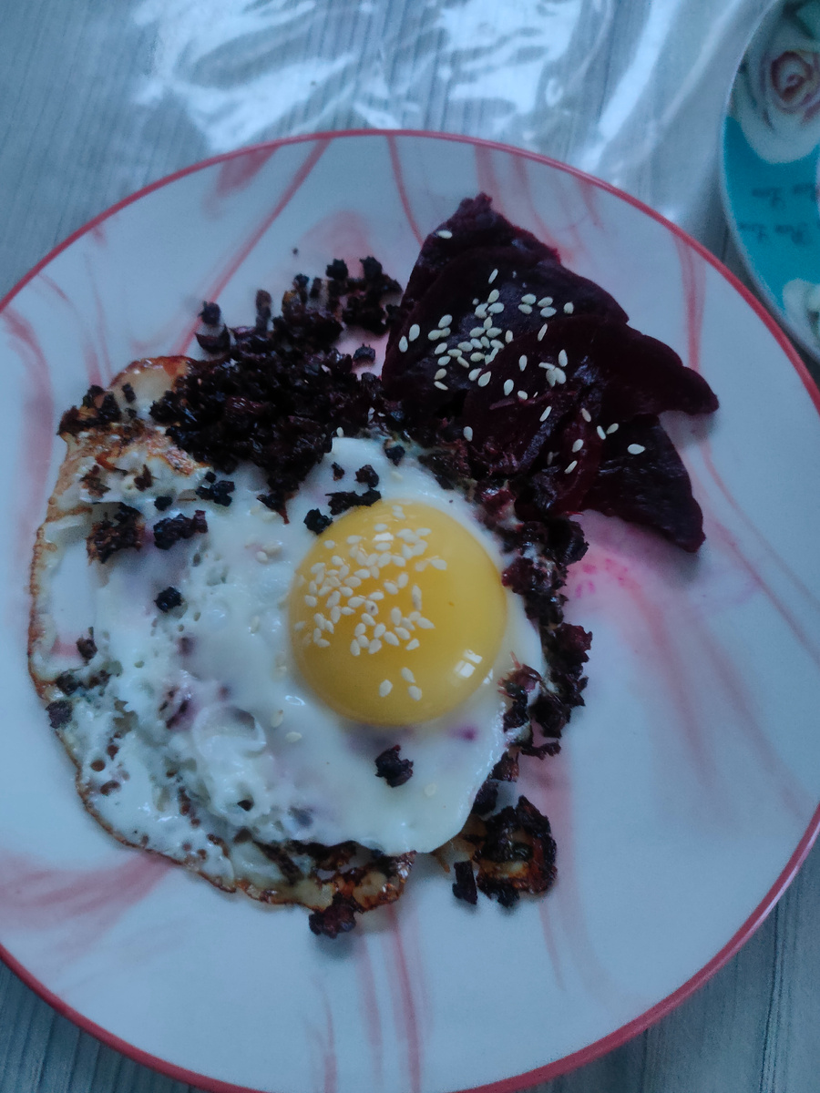 Пусть сегодня с самого утра все будет лучше, чем вчера. Доброе, доброе утро! С вами Надежда, и я приглашаю вас на мою кухню, где покажу вам мое меню на день. Встала сегодня раньше обычного. Надо многое успеть сделать. у нас потепление. Утром было - 8 градусов, а вечером - 6. Ветра нет. Снега нет. Прошел грейдер, соскреб весь снег с дороги, устроил опять барьер. Убирать не пойду, нет времени. Да и сегодня будет кому убрать. Завтрак без заморочек: глазунья и стебли свеклы, заготовленные с лета для глазуньи + ломтики вареной свеклы, черный кофе и конфета. А после завтрака не успевала отойти от телефона. С раннего утра поздравления от родственников и бывших коллег. У меня сегодня день рождения. Буду отмечать в кругу своих родных: сестра с мужем приехали из Екатеринбурга, Миша и старший брат с женой. Дети у меня сегодня работают , приедут завтра. Готовлю салаты. Полянка. Обжорка. Греческий. А селедку под шубой я сделала еще вчера. Утром сняла кожу с языка, порезала пастрому. Порезала нерк