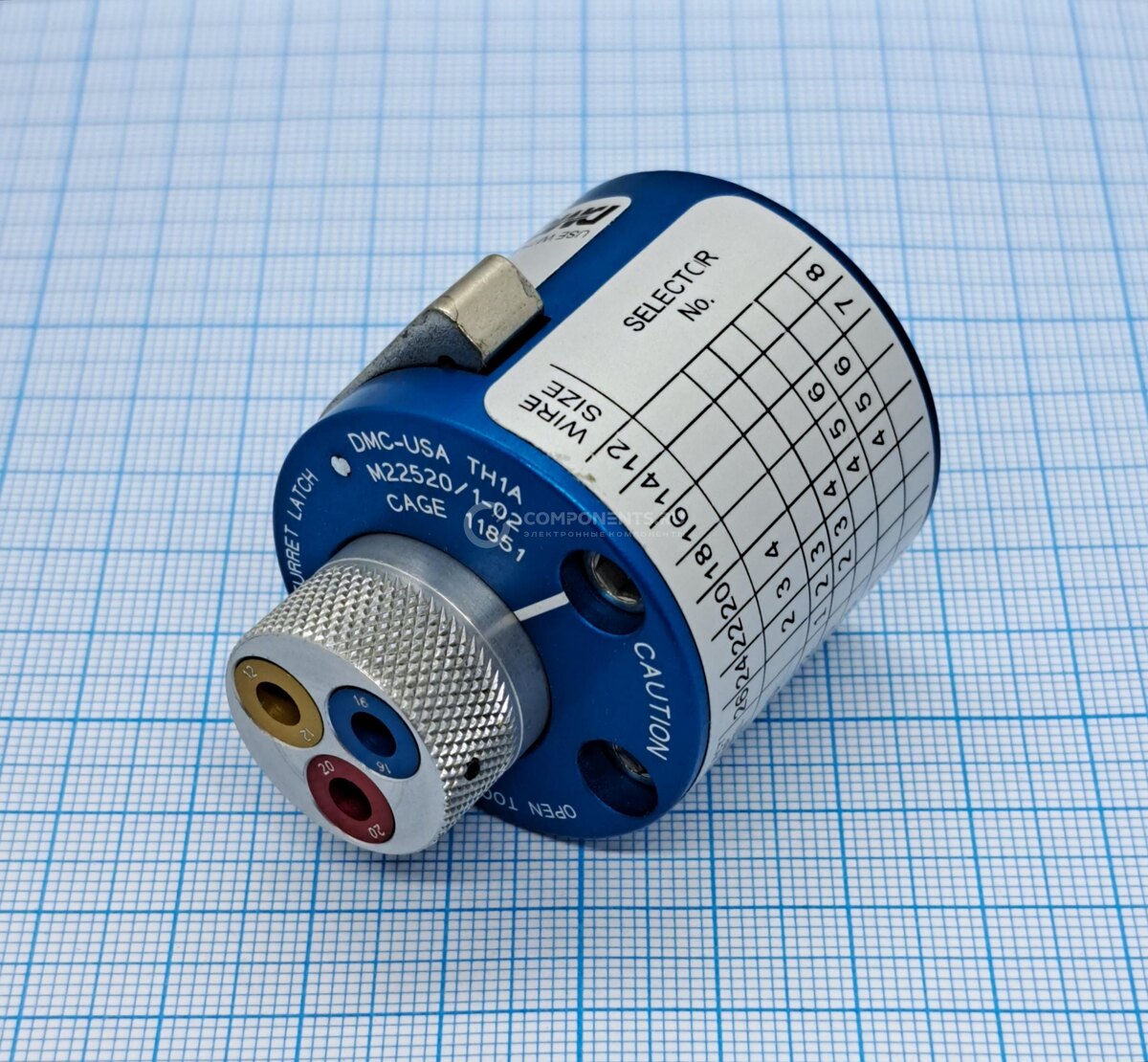 Локализатор (позиционер) M22520/1-02 (TH1A) от Daniels Manufacturing Corp. (DMC) — это сменная револьверная головка для обжимного инструмента AF8 (M22520/1-01). Она обеспечивает точное позиционирование провода и контакта, что критично для качественного обжима. 1. Совместимость. Работает только с обжимным инструментом M22520/1-01 (AF8) или аналогичными моделями. 2. Диапазон проводов. 12–26 AWG. 3. Материал. Высокопрочная инструментальная сталь с антикоррозийным покрытием. 4. Тип конструкции. Цилиндрическая туррельная головка со сменными вставками. Назначение: позиционер используется для обжима контактов в многоконтактных разъёмах, включая военные и гражданские конфигурации. Он совместим с различными типами контактов. Позиционер фиксирует провод, центрирует контакт и контролирует глубину захода, что предотвращает недообжим или пережим. Это обеспечивает симметричное распределение давления инденторов и высокое качество соединения. Локализатор M22520/1-02 используется в сферах, где критичны