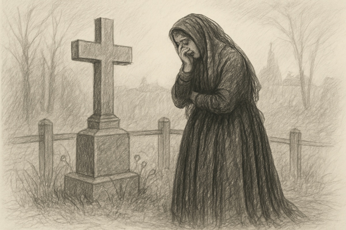 Обычно Вдовья доля наводиться классически через платок со слезами которым вдовушка вытирала слезы.