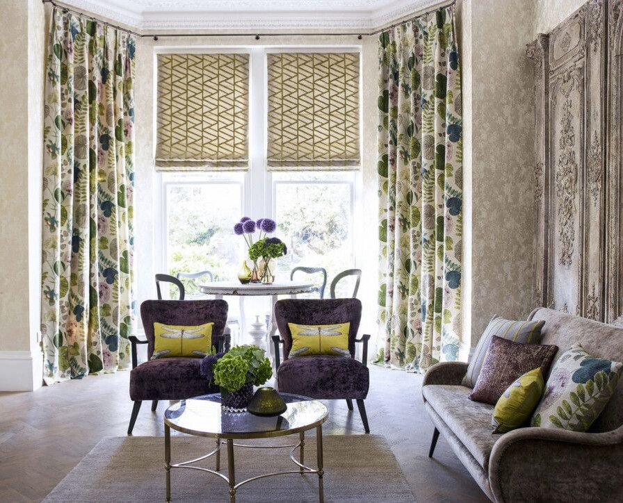 Если обои покрыты пестрым рисунком, желательно выбрать шторы более светлого цвета, чтобы разбавить яркость и добавить больше свободы и простора интерьеру.