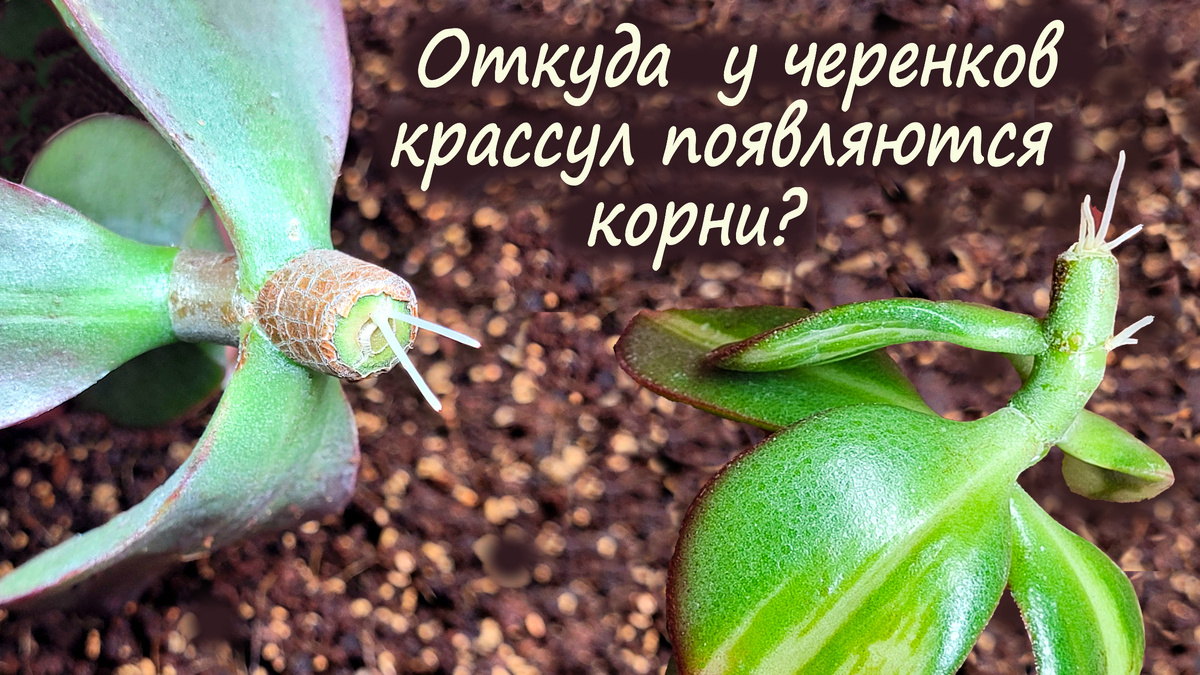 Вопрос, откуда появляются корни у черенков, может показаться странным: что тут обсуждать? Главное, что появляются и черенки укореняются, а откуда именно не важно. Так и есть, но новички мне часто задают этот вопрос. Задают потому, что хотят правильно срезать черенок, боятся срезать его не в том месте. Распространено мнение, что корни у черенков крассул, как и у многих других растений, появляются именно из узлов (мест, откуда растут листики), поэтому срезать черенок надо сразу под узлом, оставляя небольшой пенёк снизу. У меня огромный опыт укоренения крассул. Из-за нехватки времени мои черенки часто стоят на сушке дольше необходимого срока – в 1–2 недели. Могут месяц сушиться, ждать, когда я их посажу. Так затягивать, конечно, не надо. В результате многие черенки у меня пускают корни на воздухе, и я вижу, откуда. Вижу я это так часто, что могу составить собственную статистику. Решила поделиться этим опытом с Вами и на примерах наглядно показать откуда появляются корни и как это выглядит