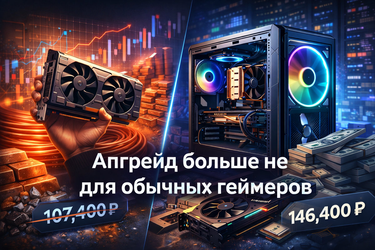 Еще недавно обновление ПК казалось логичным шагом для геймера, а сегодня все чаще напоминает серьезную покупку с долгим расчетом. Цены на комплектующие растут неравномерно, и итоговая сумма удивляет даже опытных сборщиков. Разбираемся, что именно подорожало и почему. Рост цен на металлы и ключевые компоненты глобальной цифровой инфраструктуры все заметнее отражается на рынке потребительской электроники. Особенно наглядно это видно на примере сборки персонального компьютера среднего–высокого сегмента, рассчитанной на современные игры в разрешении Full HD. Еще в 2025 году подобная конфигурация воспринималась как разумный и относительно доступный апгрейд. В 2026-м – это уже полноценная инвестиция, стоимость которой выросла на десятки тысяч рублей. Разберемся, за что именно сегодня приходится платить. Рассматриваемая конфигурация ориентирована на 1080p-гейминг и киберспортивные дисциплины. По актуальным данным, система демонстрирует следующую производительность: Иными словами, компьютер ув