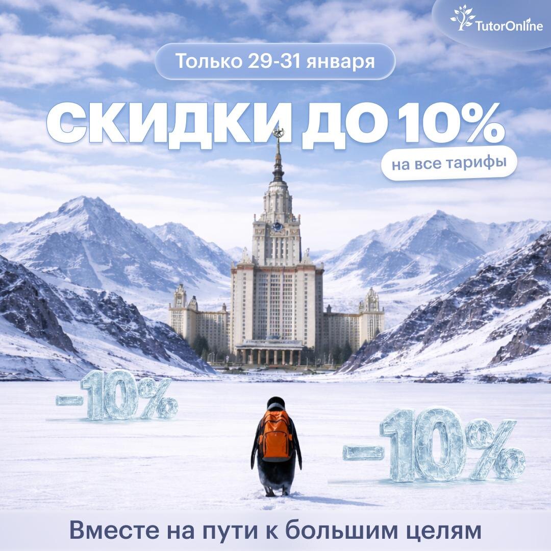 Вот и почти закончился первый учебный месяц в 2026 году ❄️ Все «мелкие пробелы», которые были в начале года, снова вылезли наружу — контрольные, первые итоги, разговоры со школой. А впереди ещё третья четверть. Самая длинная и выматывающая. И до экзаменов — уже заметно меньше времени, чем кажется. Это тот самый момент, когда важно не тянуть всё на себе. Мы в TutorOnline рядом 💛 Чтобы поддержать вас и ребёнка, помочь спокойно закрыть сложности и сохранить темп. ✨ Только с 29 по 31 января — специальные условия на обучение — для новых учеников — хороший момент начать обучение и попробовать формат со скидкой до 10% — для учеников TutorOnline — возможность заранее спланировать занятия и продолжить обучение на выгодных условиях 📚 Уроки в удобное время, по любым школьным предметам. Доступна рассрочка от банков-партнёров. ⏳ Акция действует всего 3 дня. Если чувствуете, что сейчас нужна поддержка — просто напишите нам. Мы подскажем, как лучше выстроить занятия именно в вашей ситуации 🙌
