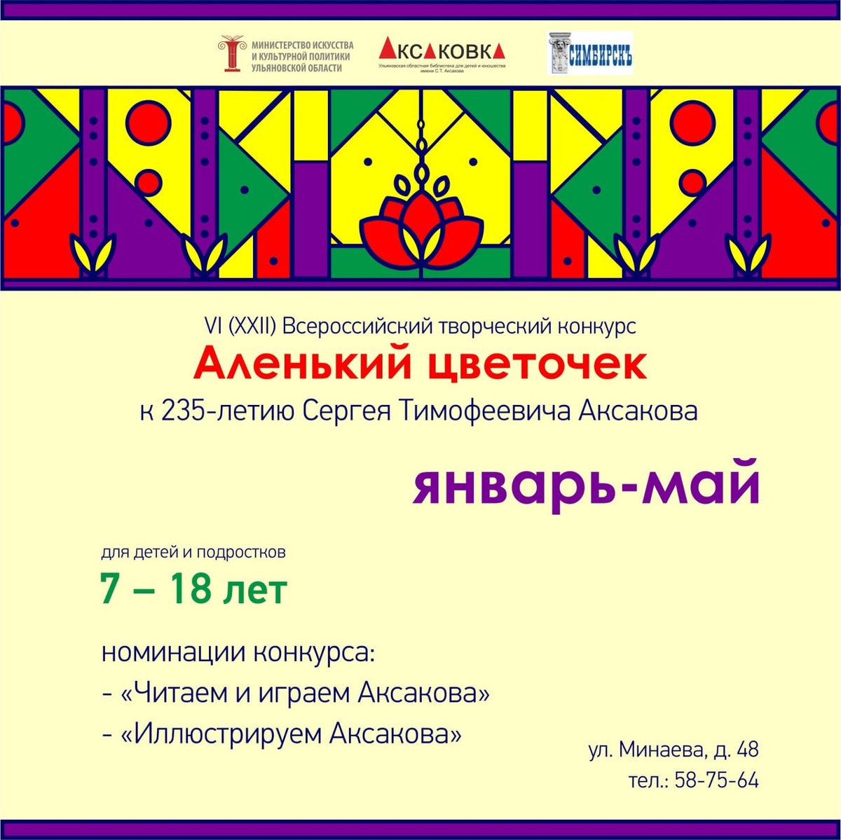 Аксаковка проводит VI (XXII) Всероссийский творческий конкурс «Аленький цветочек», приуроченный к 235-летию со дня рождения писателя. Работы примут в двух номинациях: 🎭 «Читаем и играем Аксакова» (театрализованное чтение, литературно-музыкальная композиция), 🎨 «Иллюстрируем Аксакова» (иллюстрации к сказке «Аленький цветочек»). Когда подать работу? 🖇 Успеть подать заявку нужно до 15 марта 2026 года. 👀 Подробности на нашем сайте: https://clck.ru/3RMEWv Наш канал в MAX
