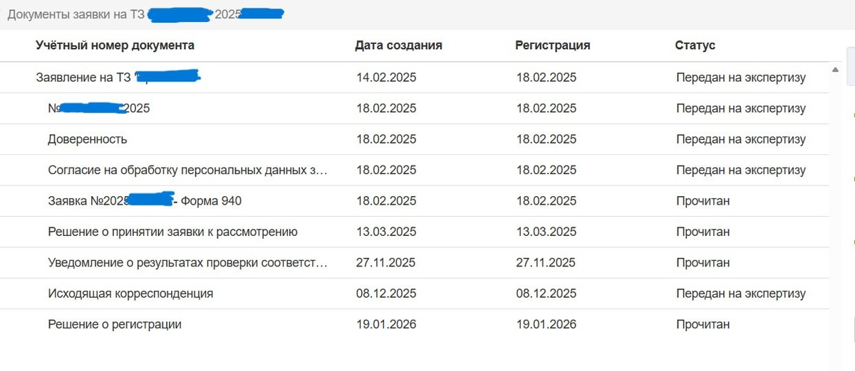 Решение о регистрации получили 19.01.2026, сейчас в процессе получения бумажного свидетельства. По этому ТЗ получали "уведомление о результатах соответствия..." = читай "предварительный отказ в регистрации". Закончилось все благополучно. "Нужные товары" ТЗ защищает. Поэтому не удивляйтесь, когда обращаетесь ко мне за регистрацией ТЗ) Для минимизации вот таких предварительных отказов в регистрации ТЗ много раз уточняюсь, как и для чего будете использовать лого или бренд. Потому что регистрируем товарный знак, который защищает Ваш бизнес, а не просто зарегистрировать хоть что-то, чтобы было...