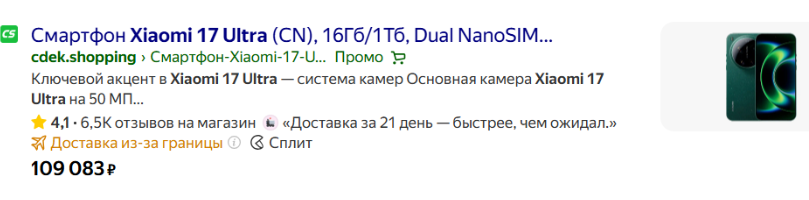 На момент написания публикации мне удалось найти только перепрошитую китайскую версию Xiaomi 17 Ultra по цене от 109.000 рублей. На фоне остальных флагманов, китайский бренд предлагает высокую производительность и премиальный набор спецификаций за вполне разумные деньги.