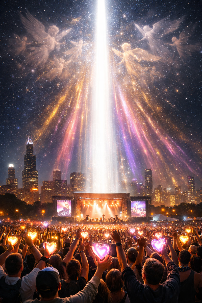 В трактате описывается конкретное событие — Музыкальный Фестиваль в Чикаго. С высшей точки зрения, это была не просто вечеринка. Это стала грандиозная возможность для духовных сил — Херувимов, Ангелов-Дэва и Вознесённых Владык — передать огромной массе людей заряд целительного Света.