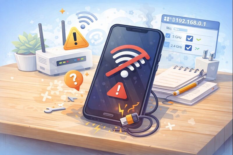 Ситуация, когда телефон внезапно перестаёт видеть Wi-Fi-сеть, знакома многим. Особенно неприятно, когда интернет нужен срочно, а смартфон будто игнорирует доступную сеть. Хорошая новость — в большинстве случаев проблема решается быстро и без ремонта. Разберём основные причины и посмотрим, что можно сделать. Иногда причина оказывается самой простой. Что проверить: Небольшие программные сбои могут мешать корректной работе беспроводной сети. Что сделать: Очень часто этого шага уже достаточно. Если телефон не видит конкретную сеть, причина может быть не в смартфоне. Что попробовать: Если сеть не видит ни одно устройство — проблема точно в роутере. Некоторые роутеры работают на частоте 5 ГГц, которую поддерживают не все телефоны. Решение: После этого Wi-Fi-сеть должна появиться в списке доступных на телефоне. Иногда сохранённая сеть Wi-Fi работает некорректно. Что сделать: Старые версии Android или iOS могут содержать ошибки, влияющие на работу Wi-Fi. Рекомендуется: Если телефон не видит н