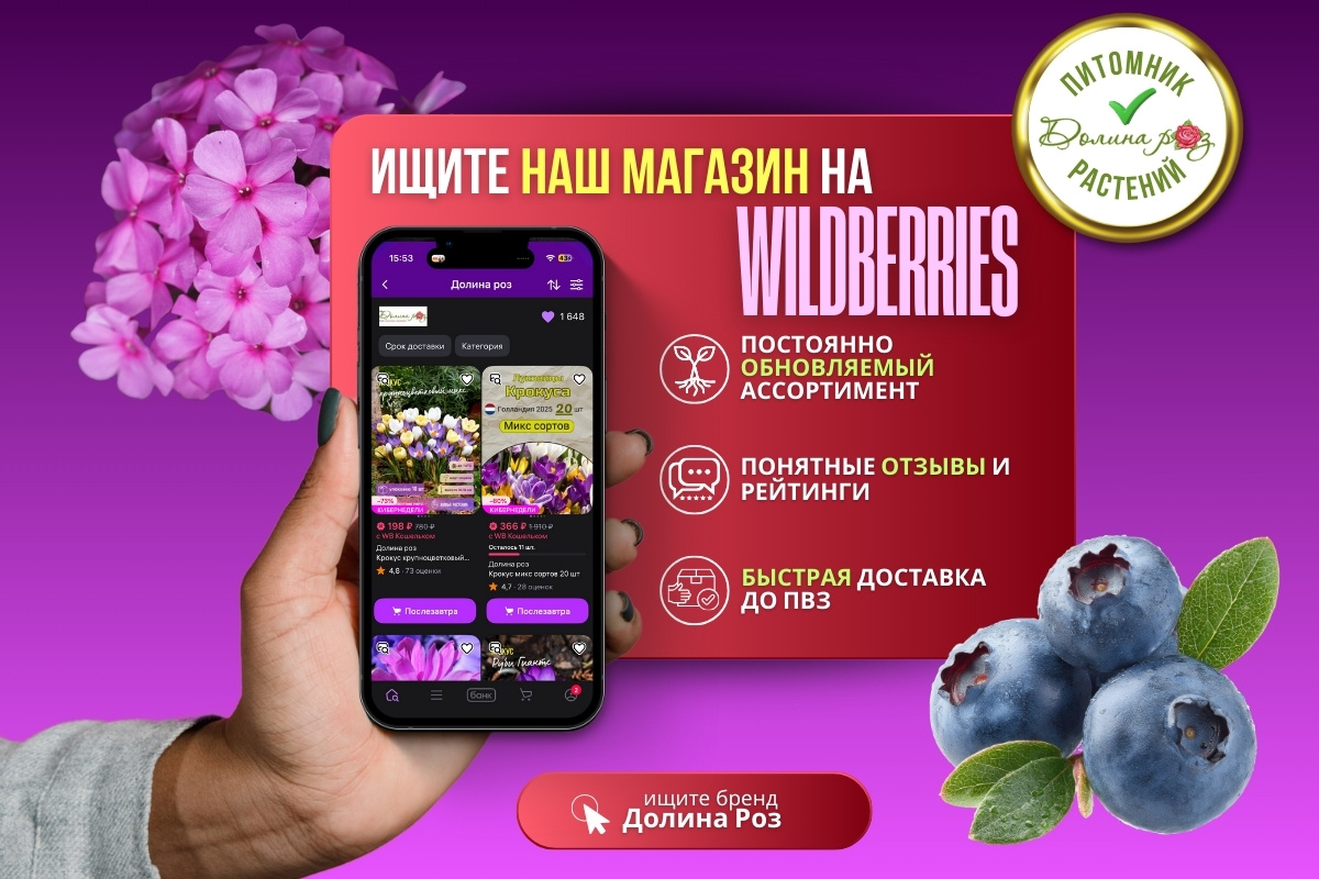 Ваш сад мечты теперь всего в клике от вас! Ищите питомник растений «Долина роз» на Wildberries 🌹 🌿Уже 2,5 года, как мы открыли свой магазин «Долина роз» на Wildberries, за это время: И я с уверенностью могу сказать, что обновить сад стало ещё проще, быстрее и надёжнее! ✅ Цветущие многолетники, которые будут радовать вас годами. ✅ Декоративные кустарники для живой изгороди и акцентов. ✅ Луковичные цветы для ярких весенних и осенних клумб. ✅ Всё для того, чтобы ваш сад стал именно таким, каким вы его представляли. Больше не нужно искать сайты, сравнивать условия доставки и переживать за сохранность заказа. Маркетплейс Wildberries берёт все логистические и платежные заботы на себя, а мы гарантируем качество каждого растения. Просто введите в поиске Wildberries: Долина роз и в выпавшем списке выберите: ”Долина роз БРЕНД” и добро пожаловать в наш зелёный уголок! Ваш сад начинается с правильного выбора. А правильный выбор начинается там, где вам удобно. #саженцы #питомникрастений #wildberr