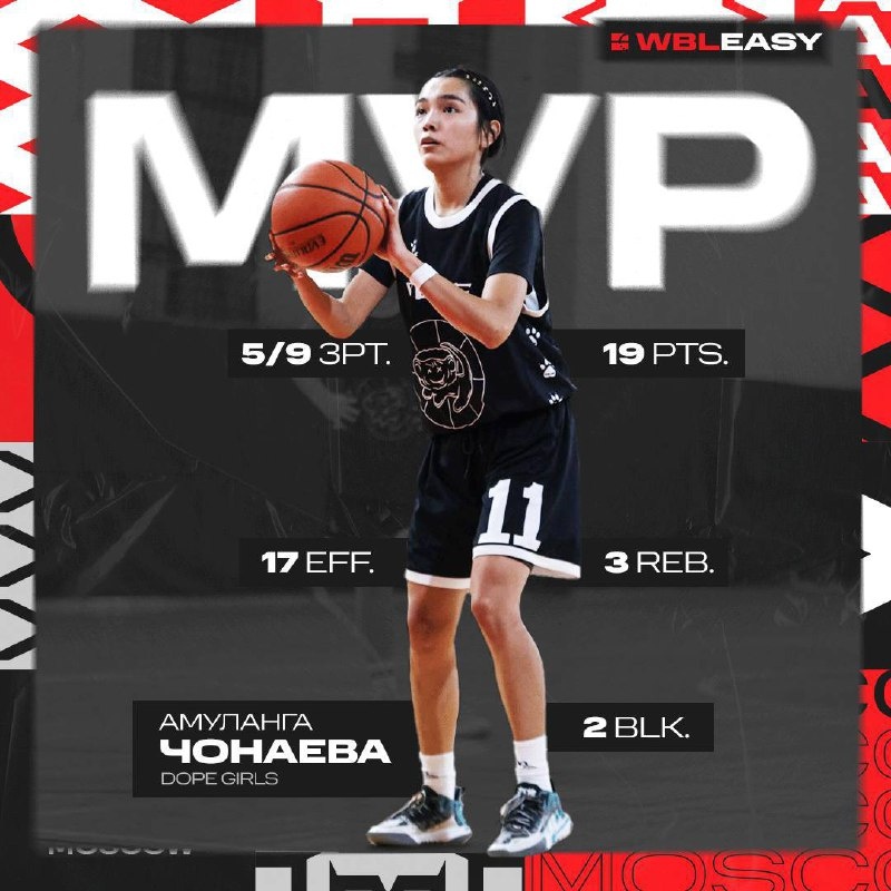 Чонаева Амуланга (Dope Girls) vs We'Queens WBL Easy 11 тур 46:45 19 очков, 3 подбора, 2 блок-шота, 5/9 3-очковые, 17 эффективность В матче We'Queens — Dope Girls до второй половины не было ясно, кто одержит победу, но в третьей четверти Амуланга Чонаева включила турбо-режим, набрав 14 очков. Амуланга забила 4 трехочковых подряд, создав своей команде победную разницу. Несмотря на скромные габариты, Чонаева показала цепкую игру в защите, сделав 2 блок-шота и 1 перехват. 📱Наш сайт 📱Группа Вконтакте 1️⃣@ABL Moscow