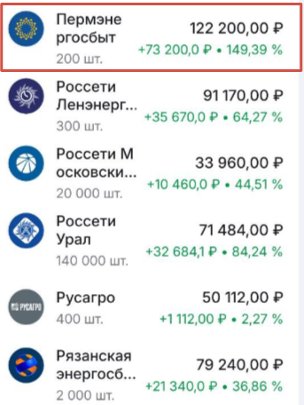 Акции Пермэнергосбыта прямо сейчас у меня в плюсе на 150%, и это обыкновенные, привилегированные там вообще в космос улетели. На скрине видны доходности и по некоторым другим представителям сектора, которые стояли рядом по алфавиту.