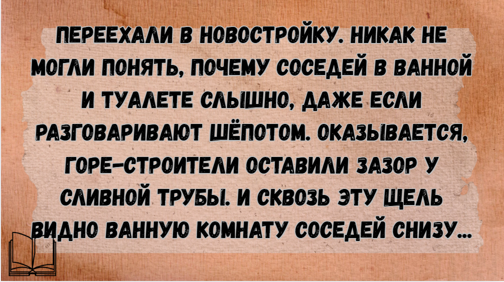 Мы собрали истории от новоселов, чьи будни превратились в бесконечный ситком. Вы узнаете, как сосед-футболист может стать счастливым билетом в высшее общество, зачем в ванной вас могут ждать незнакомые мужчины и почему шторами стоит обзавестись в первую очередь, даже если квартира ваша находится на высоком этаже. Впрочем, сюрпризы подкидывают не только новостройки: в конце статьи вас ждет очаровательная история о том, как муж с женой себе квартиру купили, а к ней, оказывается, жилец прилагался. Рекомендуем также заглянуть сюда 👇👇👇 Спасибо, что дочитали статью до конца!