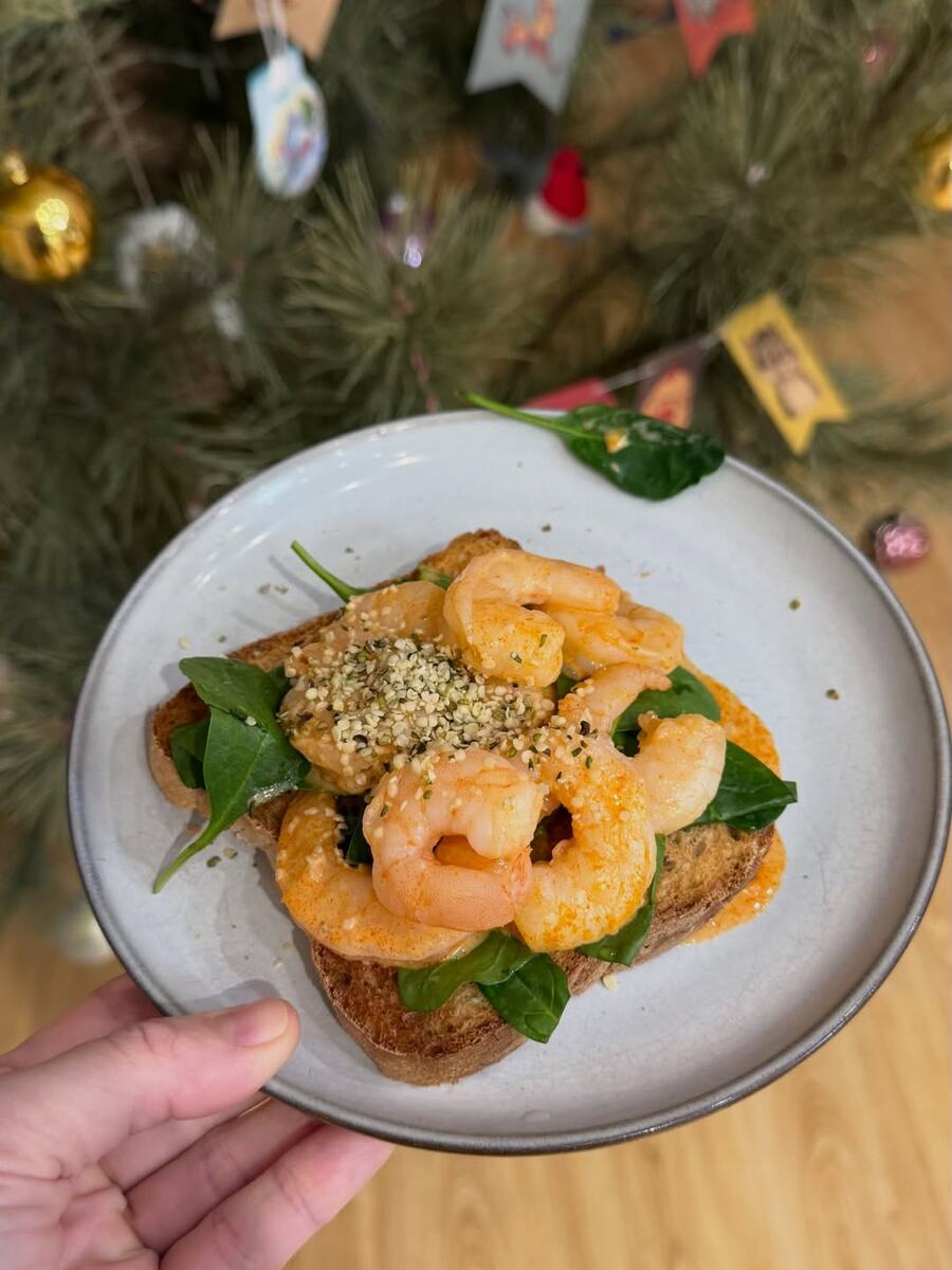 1. Домашний цз хлеб с креветками в соусе Том ям + зелень