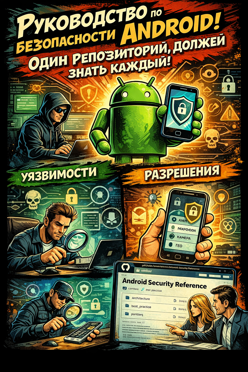 Android - самая массовая мобильная ОС в мире. А где массовость, там всегда повышенный интерес со стороны злоумышленников: шпионские приложения, трояны, утечки данных, скрытые разрешения, бэкдоры и банальный человеческий фактор. На этом фоне особенно ценны структурированные, живые и регулярно обновляемые источники, которые не продают «курсы», а дают реальную техническую базу. Один из таких источников - Android Security Reference. Android Security Reference - это открытый GitHub-репозиторий, представляющий собой практическое справочное руководство по безопасности Android. 📌 Репозиторий: https://github.com/doridori/Android-Security-Reference Его ключевая особенность - актуальность. Автор регулярно обновляет материалы, дополняя их новыми техниками атак, примерами уязвимостей и методами защиты. Это не «учебник для новичков», но и не сухая документация - скорее