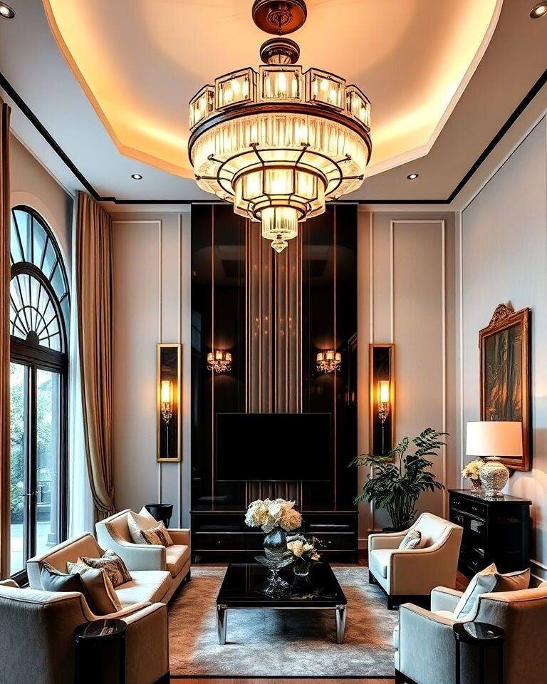 Смелый, эмоциональный и очень роскошный возврат Ар-Деко Что отличает новый Ар-Деко от версии 20-х годов? Ар-Деко теперь не такой шикарный и холодный со строгой геометрией. Сейчас- это могут быть плавные, текучие линии формы, вдохновленные природой, и палитра глубоких земляных оттенков (терракота, охра, темный изумруд) вместо только металликов. Главные черты тренда 2026: • Материалы: цветное стекло (витражное, матовое), темное дерево с выразительным шпоном, бархат и натуральный камень с прожилками. Золото и латунь — как деликатные акценты, а не основа. • Смесь эпох: Ар-Деко прекрасно "дружит" с модерном середины века и с биофильным дизайном • Роскошь: теперь не про демонстрацию богатства, а про тактильные ощущения и атмосферу. Приглушенный свет, игра текстур, предметы, похожие на арт-объекты. • Акцент на мебели: один шикарный диван или винтажный буфет с геометрическим фасадом может задать тон всей комнате. • Зеркала в металлических рамах в виде солнца • Текстиль с геометрическим ил