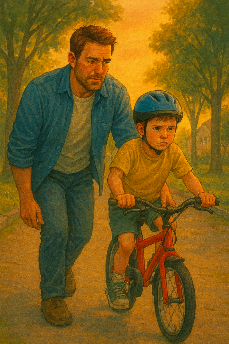 Тёплый воздух, запах пыли после дневной жары, двор, где всё кажется привычным и вечным. Но именно в таких вечерах прячется то, что меняет человека. Мы вышли во двор: я, мой сын и его новый красный велосипед, который он выбрал сам, потому что, по его словам, красный – самый быстрый. Словно знак стремления к скорости и свободе. Он держал руль так, будто это был штурвал, и в его пальцах уже чувствовалась решимость.
