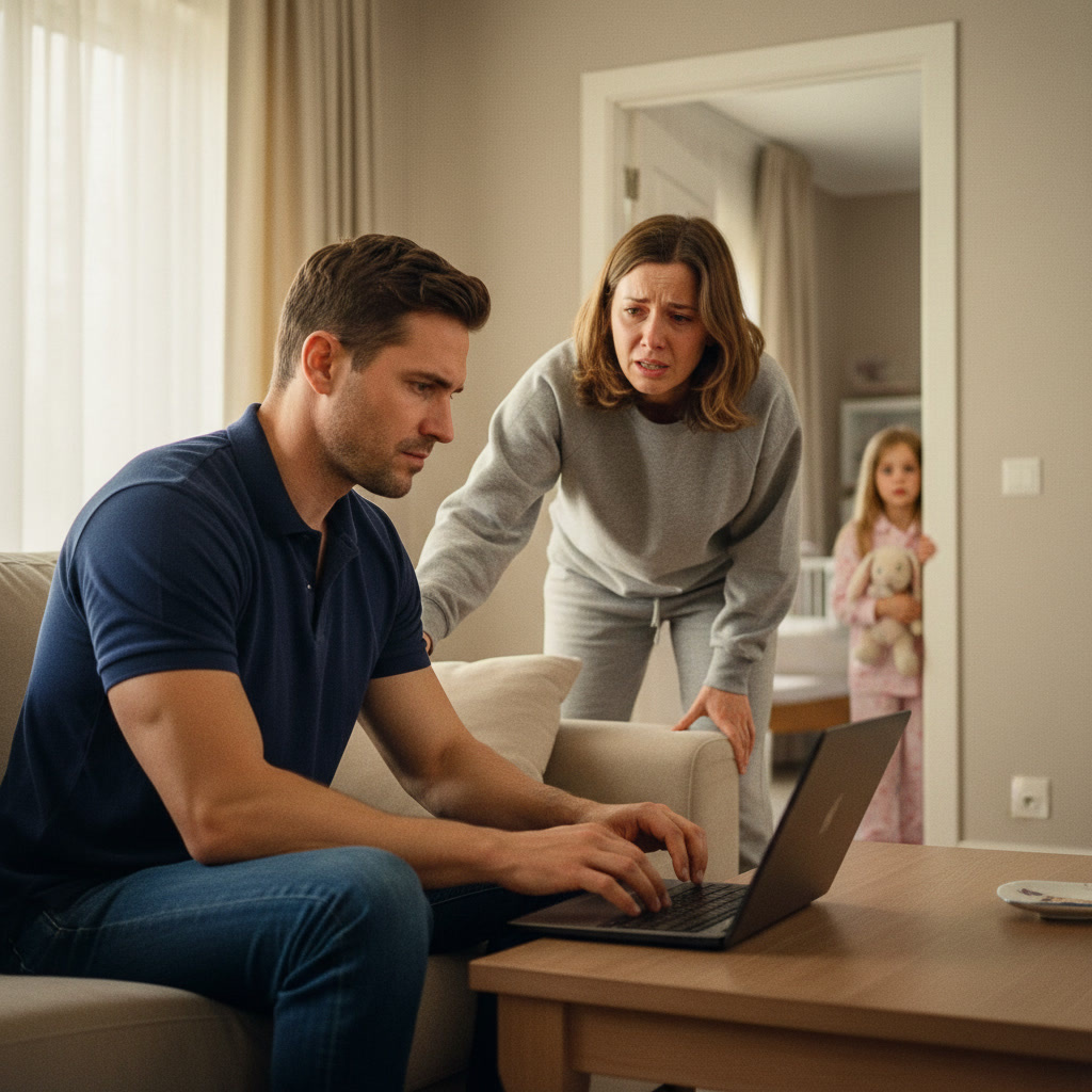Вечером, когда Аня наконец уснула после долгих уговоров и трёх сказок подряд, Марина вышла в гостиную. Олег сидел на диване с ноутбуком на коленях и смотрел какой-то документальный фильм про архитектуру.