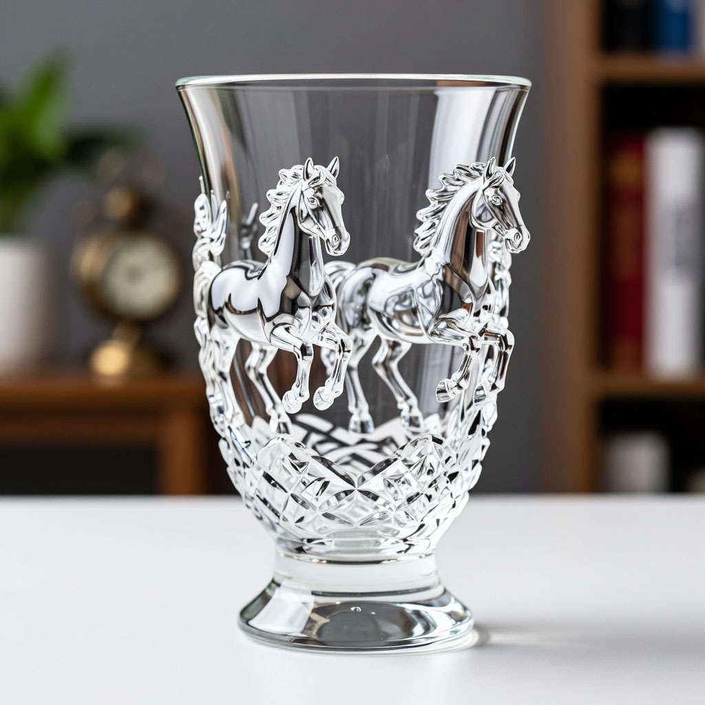 Ваза из хрусталя «Лошади» — это изысканное произведение декоративно‑прикладного искусства, в котором гармонично сочетаются техническая виртуозность обработки материала и художественная выразительность образа. Подобное изделие не просто выполняет утилитарную функцию сосуда, но становится самостоятельным элементом интерьера, способным преобразить пространство и придать ему особую атмосферу благородной утончённости.