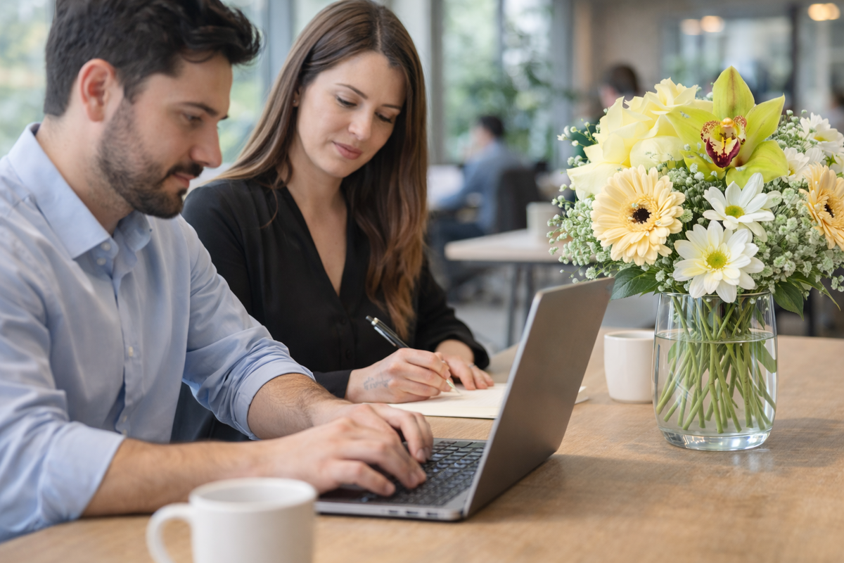 Как выбрать букет для офиса, который украсит пространство и не создаст проблем? От размера и запахов до аллергенов и места размещения — полный гайд для правильного выбора подарка, который скажет правильные слова. Букет в офисе повышает настроение и улучшает атмосферу. Но выбирать его нужно не как дома. Размер имеет значение. Запахи имеют значение. Место имеет значение. Каждая деталь важна, потому что букет — это послание. Размер, вес и место: баланс между красотой и практичностью Букет не должен быть огромным. Букет размером 50 см займёт половину стола и разозлит коллег. Идеальный размер 30-40 см, вес не больше килограмма. Это красиво и не занимает рабочее место. Букет удобно переносить и ставить. Это баланс между эстетикой и удобством. Ставьте букет на тумбочку или полку рядом со столом. Не на рабочий стол — там не хватает места. Подальше от батареи и окна с прямым солнцем. Тепло и солнце быстро высушивают букет и портят его внешний вид. Букет должен быть виден, но не мешать работе. З