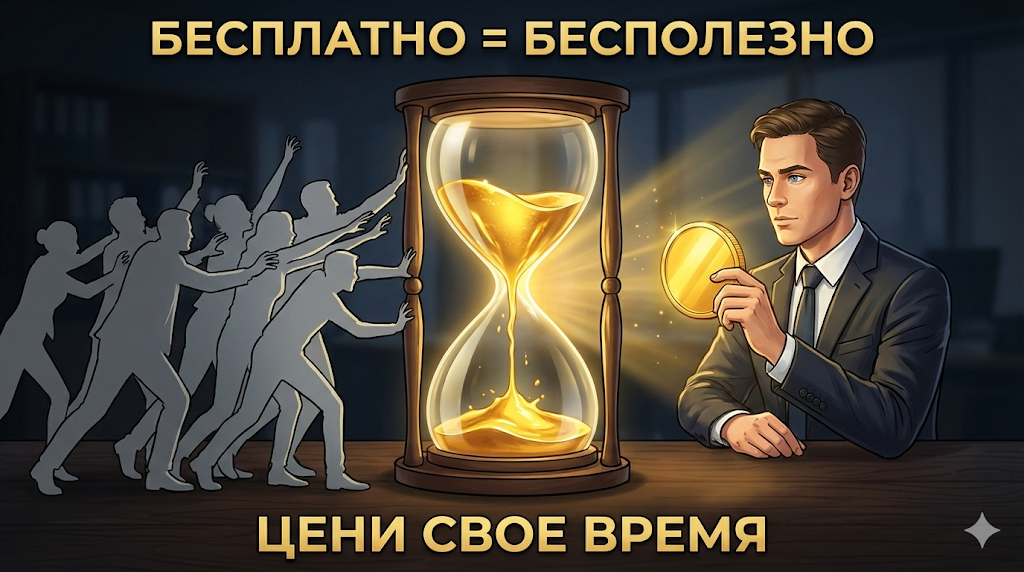 Местами мне было очень сложно отказывать людям. Пишет знакомый знакомого или подписчик: «Саш, привет, глянь одним глазком, что у меня с сайтом не так?». И ты по доброте душевной тратишь час, два, расписываешь ошибки, даешь советы. А в ответ: «Ой, спасибо, я подумаю». И человек исчезает. Или, что еще хуже, ничего не внедряет. Проблема в том, что, пытаясь быть «хорошим парнем», ты крадешь время у своих платящих клиентов и у самого себя. Без фундамента в виде жестких границ экспертность обесценивается. Я долго жил в иллюзии, что бесплатные советы — это «прогрев». Что человек увидит мою пользу и купит. Но статистика показала обратное: бесплатное не ценят. 1. Фильтр «халявщиков». Когда ты ставишь даже минимальный ценник за консультацию или аудит, отваливаются 90% тех, кто просто пришел потратить время. Остаются те, у кого реально «болит» и есть деньги на решение. 2. Ответственность сторон. Когда человек заплатил, он слушает внимательнее. Он внедряет. Он хочет «отбить» свои вложения. Результ