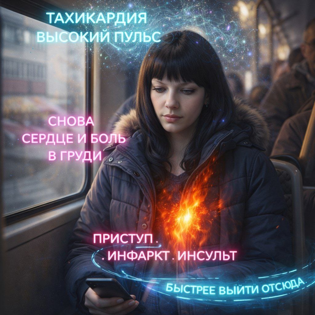ключевого симптома — неистового сердцебиения. Ещё на остановке, при виде приближающегося транспорта, возникает первый предвестник — чувство лёгкого сжатия в груди, как будто ремень уже затянут слишком туго. Сделать шаг в салон — это акт преодоления физического барьера. Как только двери закрываются, начинается главное мучение: прислушивание. Человек садится у окна, ближе к выходу, и его внимание сужается до мониторинга пульса. Сначала он просто чувствует стук в груди. Затем, по мере движения, стук учащается — от толчка при трогании, от необходимости просить остановку, от духоты, от мысли «а если станет плохо сейчас». Пульс становится не просто симптомом, а главным героем драмы. Он ощущается не только в груди, но и в висках, в горле, в ушах, заглушая внешние звуки. Возникает чувство, что сердце вот-вот выпрыгнет из грудной клетки, работает на износ, сбивается с ритма.