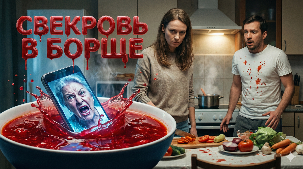 Звук был сочным, жирным. Телефон нырнул в гущу супа, подняв фонтан рубиновых брызг. Голос Тамары Игоревны оборвался на полуслове. Экран мигнул и погас, утонув в свекольной бездне.