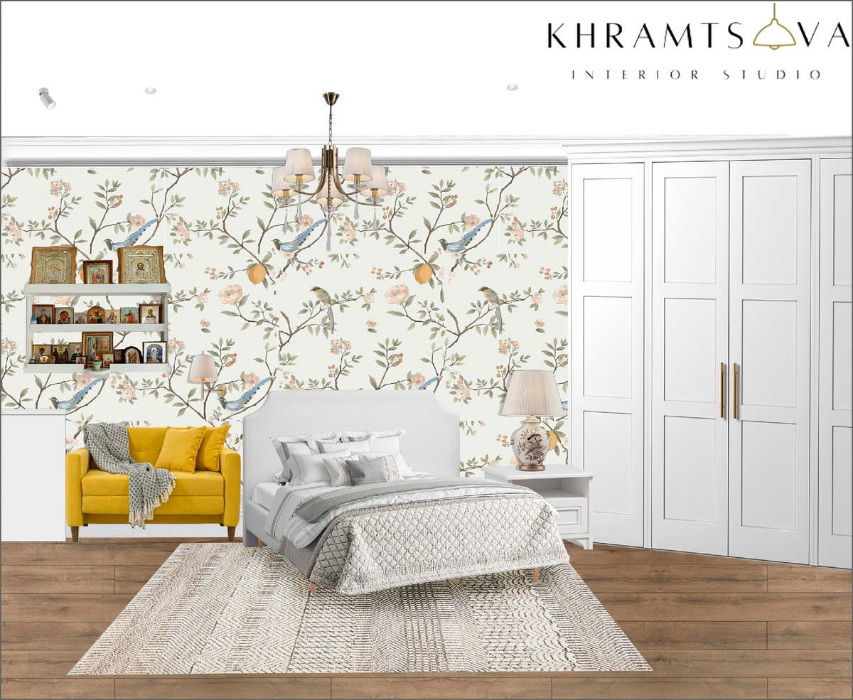 Прованс родился не как декорация, а как отражение жизни юга Франции — домов, выгоревших на солнце, мебели, сделанной на поколения вперёд, и привычки ценить тишину, свет и воздух. В нём нет демонстративной роскоши, но есть благородство времени. Формы здесь мягкие и спокойные: классические пропорции, филёнки, изящные изгибы, мебель без резких линий. Цвет — сложный и природный: молочные и сливочные оттенки, выцветшие зелёные, тёплые песочные и приглушённые охры. Детали — самые важные: латунь с тёплым блеском, текстиль с неброским рисунком, орнаменты, будто немного стертые временем. В коллажах спальни Прованс раскрывается по-разному. Где-то он звучит через акцентную стену с ботаническим мотивом, создающим ощущение сада за окном. Где-то — через спокойные панельные стены, которые становятся фоном для света, текстиля и воздуха. Белые шкафы с классической геометрией уравновешивают декоративность, а рабочая зона у окна остаётся ч