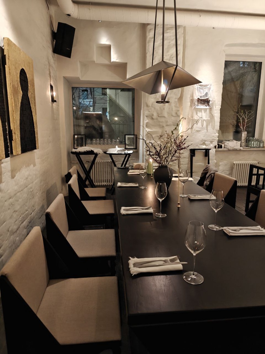 ? Во дворе дома, примыкающего к стене Рождественского монастыря, открылся ресторан «Объект культурного наследия». Его тут и назвали ОбКуНас или, еще короче, ОКН. ОКН выглядит гибридом кельи и покинутого аристократического дома: беленые стены, старый камень на полу, золотые панели, стилизованные образа - арт-объекты. Есть даже тихая красная комната для откровений, исповедей и молчания (идеальное место для паузы в гомонящем городе, кстати). Отделанная лемохом (деревянной черепицей) барная стойка напоминает о русском допетровском зодчестве. Здесь много смыслов, много поводов для интересных разговоров. ОКН - идеальное место для тех, кто готов часами рассуждать о визуальных концепциях, символах и идеях. Слишком сложная еда в таких декорациях была бы перебором, поэтому шефу Василию Долматову нет другого пути, как готовить узнаваемую по вкусу кухню. Чтобы отвечать окружению, снабжает ее шокирующими деталями: хлебная доска – с безглютеновой булочкой из псилиума, рыбная котлета на манер пожа