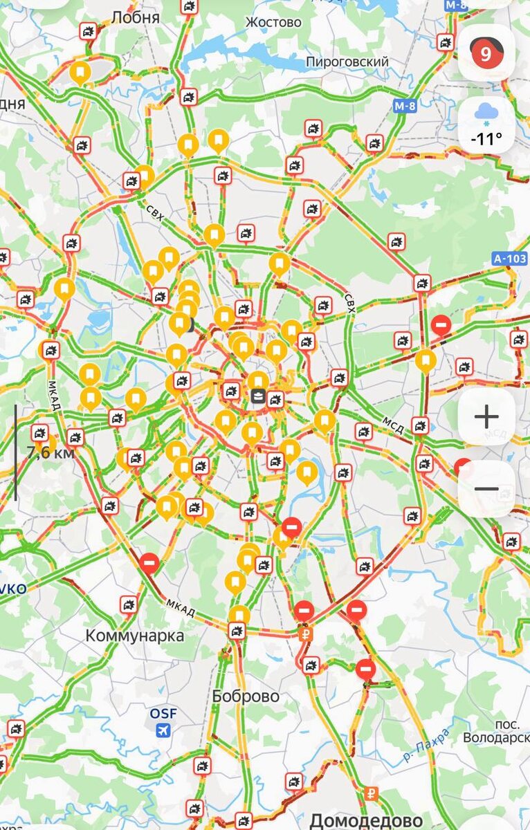 В Москве второй день подряд фиксируются пробки в 9-10 баллов