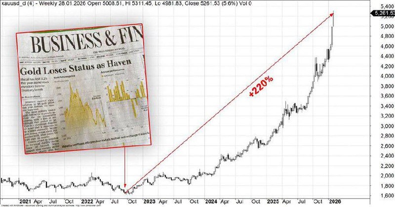 Газета The Wall Street Journal точно подметила в 2022г. - Золото полностью утратило свой статус убежища для капитала. Поздравляю - с этого момента цена выросла + 230% в $😅🤣!