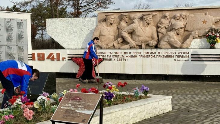 Участники республиканской патриотической акции Крымский студенческий десант Республики Крым «#ТрудКрут» провели работы по благоустройству на объекте культурного наследия – Братской могилы советских воинов, датируемой периодом 1941–1944 и 1946 годов.