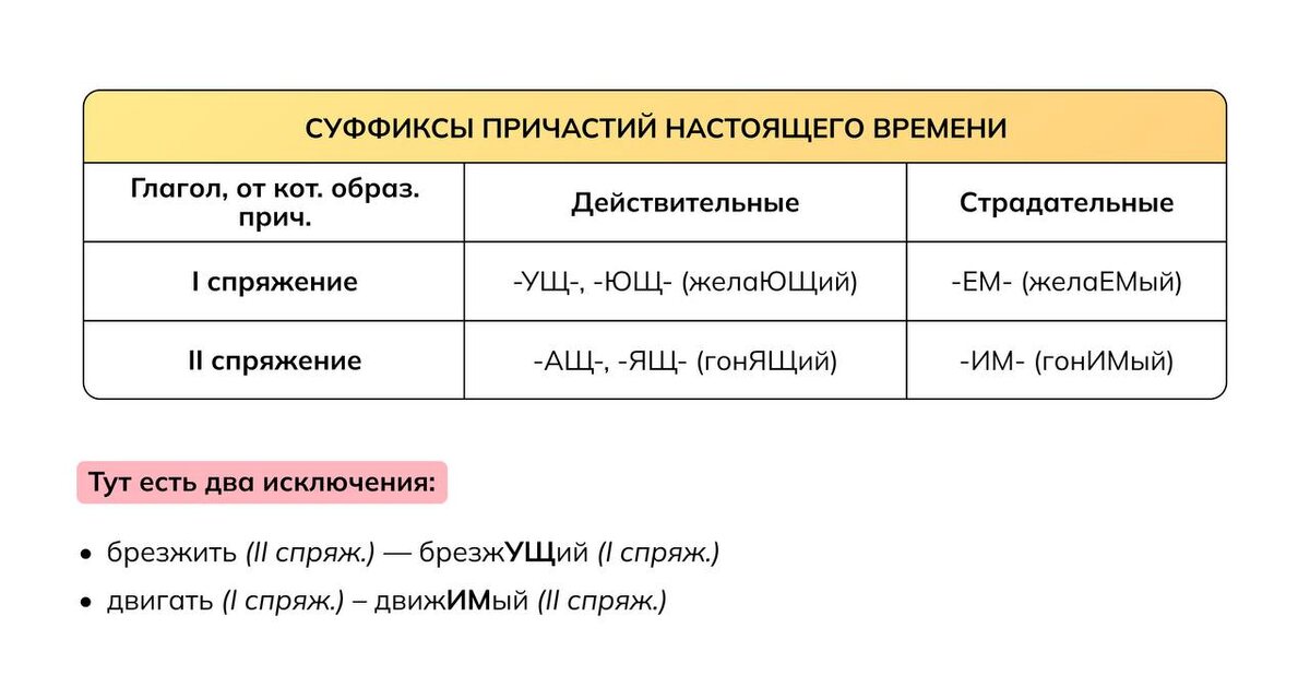 Сохраняй таблицу с суффиксами причастий настоящего времени для задания №12 🐱